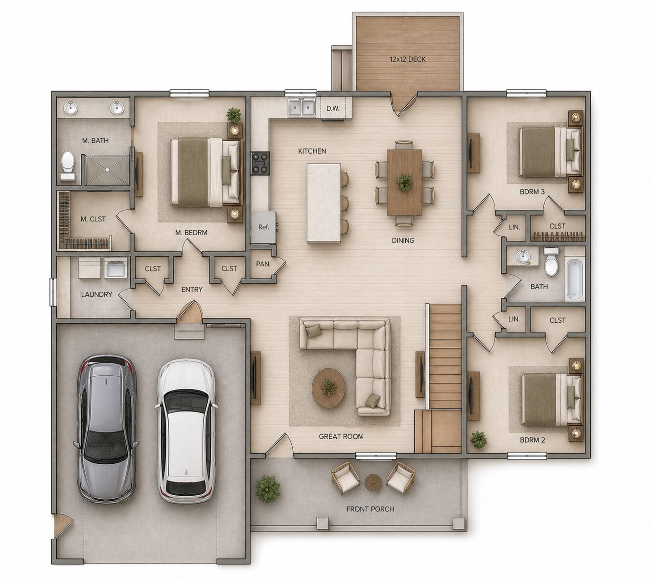 3 bed, 2 bath, 2 car garage